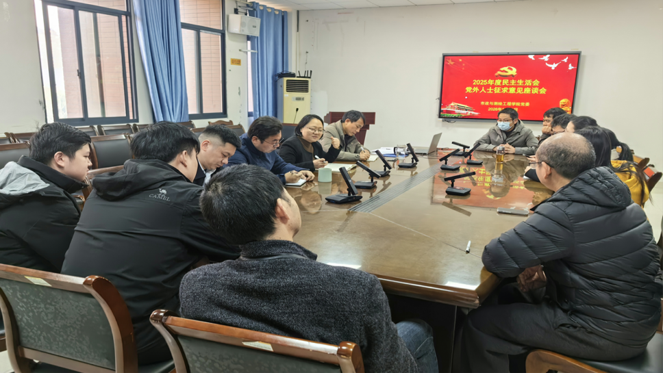 (通讯员 赵丽)为确保2025年度民主生活会开出高质量,取得好效果,2026年1月15日上午,学院党委在市测楼320召开民主生活会前党外人士征求意见座谈会。学院民主党派代表、无党派代表教师围绕学院党委领导班子和个人,就“五个带头”积极发表意见,并就学院学科建设、学生管理、工会工作等方面建言献策,为民主生活会高质量召开筑牢基础。