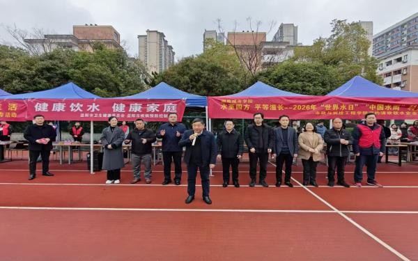 (通讯员 周俊 王振宇 蔡玉清 段淋康)2026年3月22日上午,春意盎然的湖南城市学院校园内热闹非凡,益阳市第三十四届“世界水日”与第三十九届“中国水周”科普宣传活动在此正式拉开帷幕。本次活动由湖南城市学院市政与测绘工程学院联合益阳市疾病预防控制中心、益阳市自来水有限公司、上实环境(益阳城北)污水处理有限公司共同举办,市测院“湘约清欢”饮用水安全社会实践团队和青年志愿者服务中心与社会实践部共同承办。活动以“水与性别”、“国家水网 世纪画卷”为主题,吸引全校300余名师生积极参加。湖南城市学院副校长谭献良、益阳市疾病预防控制中心主任柴定龙、益阳市自来水有限公司总经理朱庆伟、上实环境(益阳城北)污水处理有限公司总经理孟龙、湖南城市学院后勤管理处处长钟雪飞、市政与测绘工程学院党委书记饶迎等领导嘉宾出席活动。