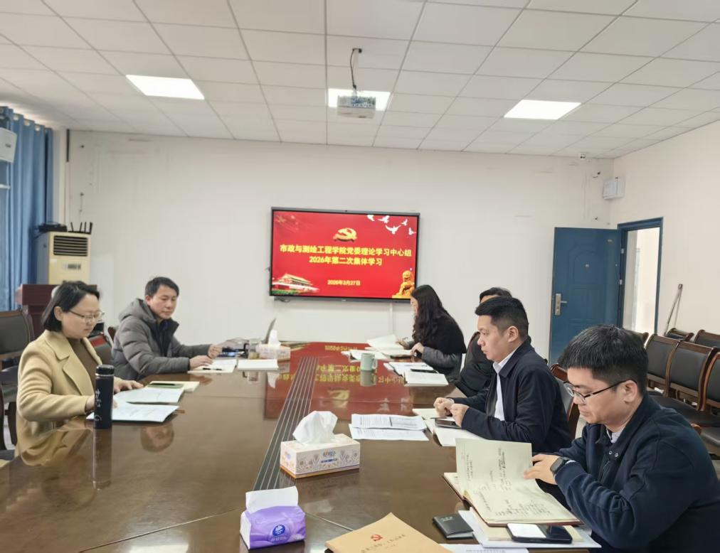 (通讯员 赵丽)2026年3月27日上午,市政与测绘工程学院党委理论学习中心组在市测楼320会议室举行2026年第二次集体学习。学院党委书记饶迎主持学习,党委理论学习中心组成员参与学习。