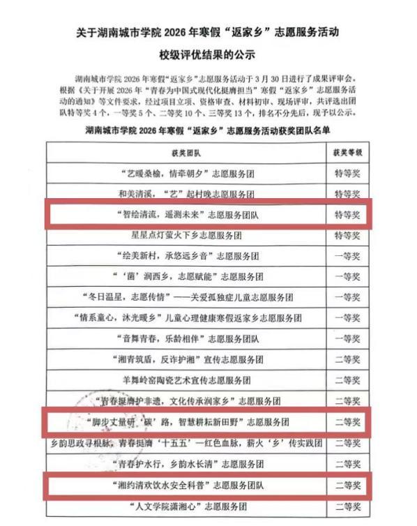 (通讯员 张家硕) 为深入学习贯彻习近平总书记关于青年工作的重要指示精神,市政与测绘工程学院紧扣“青春为中国式现代化挺膺担当”主题,于2025—2026学年寒假组建四支实践团队,分赴湖南多地城乡基层开展“返家乡”志愿服务活动。各团队立足遥感、测绘、给排水等专业特色,以专业赋能实践,为生态文明建设与乡村振兴注入青春动能,并在校级评审中斩获多项佳绩。