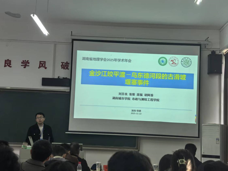 (通讯员 刘芬良)11月22日至23日,湖南省地理学会2025年学术年会在湖南文理学院顺利召开。本次年会以“地理学创新发展与现代化新湖南建设”为主题,由湖南省地理学会、湖南师范大学与湖南文理学院联合主办,湖南文理学院地理科学与旅游学院承办,湖南城市学院等单位协办。我院教师方新、刘芬良、张维、席振及研究生别冰冰参加会议,与来自全省地理学界的专家学者共聚一堂,围绕新时代地理学的创新方向展开深入交流,分享学术前沿成果,助力湖南省地理学在科学研究、社会服务与教育科普等方面的协同发展,服务湖南“三高四新”美好蓝图实施。