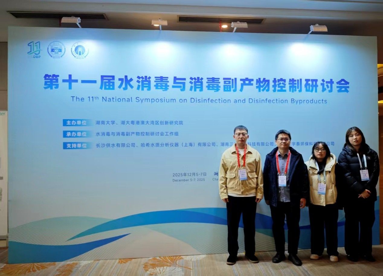 (通讯员 王振宇)2025年12月5日至7日,由湖南大学、湖大粤港澳大湾区创新研究院主办的“第十一届水消毒与消毒副产物控制研讨会”在长沙顺利召开。本次会议汇聚了200余位国内外专家学者、研究生及企业代表,共同聚焦水处理消毒与消毒副产物污染控制的前沿进展,深入探讨科技创新与实践应用,助力领域科研水平提升与技术发展。学院给排水科学与工程系主任周俊、教师王振宇以及2023级新工科班学生江美、蔡玉清参加了此次研讨会