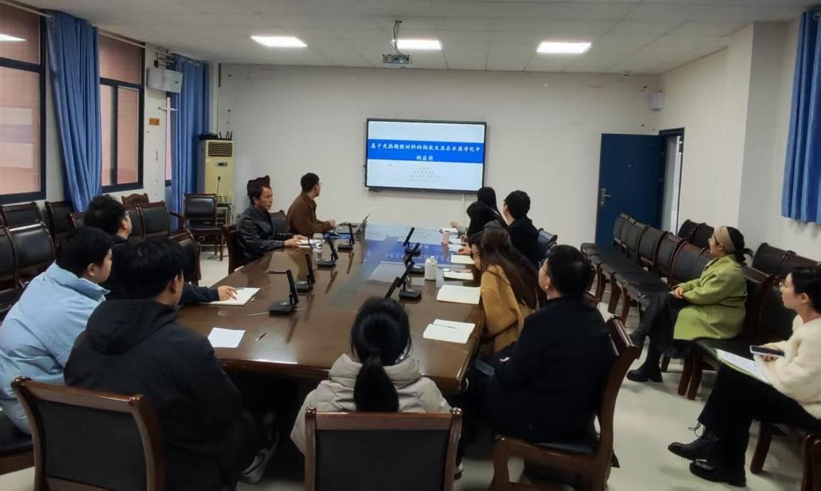 讲座下半场,王振宇博士带来了题为“基于光热凝胶材料的构建及其在水质净化中的应用”的学术报告。他着眼于太阳能这一清洁能源的利用,介绍了团队在开发新型光热响应凝胶材料方面的突破。王博士阐述了如何利用该类材料在光照下产生的局部热效应及引发的协同过程(如增强吸附、催化降解、相变分离等),高效去除水中的多种污染物,包括有机染料、重金属离子等。这项研究为实现低能耗、甚至无额外能源消耗的分布式水质净化技术提供了富有启发性的新途径。